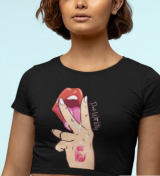 Pink Wet Kitty Sexy Lips Tight Crop Top